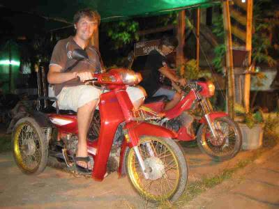 Aber fuer mich gabs natuerlich auch das richtige Gefaehrt! Ein in Thailand auf 3 Raeder umgeruesteter Roller. Der stand da einfach am Strassenrand rum und hatte sogar noch den Schluessel stecken!