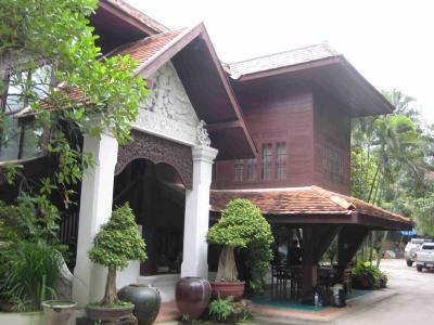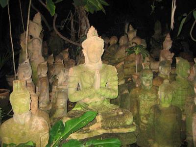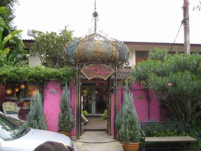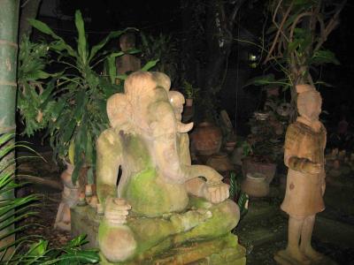 Das Haus ist wirklich riesig und in einem super Zustand. Auch haben sie, sie wohnt da naemlich mit ihrer restlichen Familie, einen ziemlich grossen Laden, umdort die Terrakotta Sachen aus ihrer Fabrik nicht weit von Chiang Mai zu verkaufen. Gleich um die Ecke gibt’s dann noch fuer die Kaeufer einen kleinen Garten, in dem die Sachen zur Schau gestellt sind. Der hatte es wirklich in sich, wirkte wie einer der Tempel von Kambotscha. Leider war es da schon dunkel, als ich da ne Fuehrung bekommen habe.