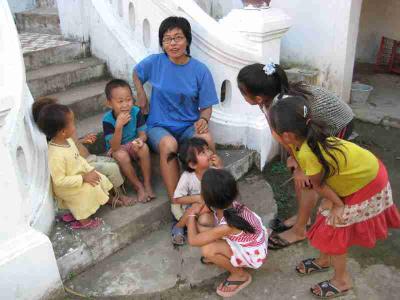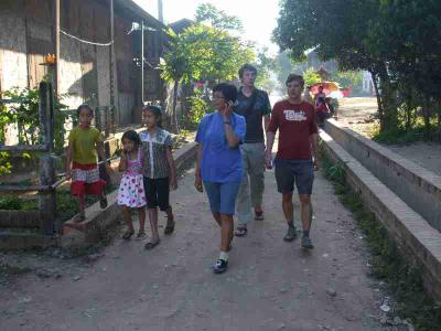 Tew hat sich ganz gut mit denen unterhalten koennen, da die Lao Sprache aehnlich dem Nordost Thai ist. Ich glaub am Ende wollten alle von ihr adoptiert werden :-)