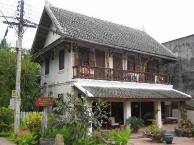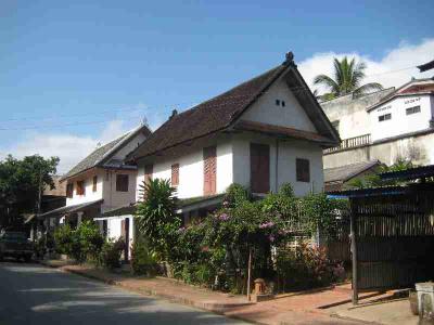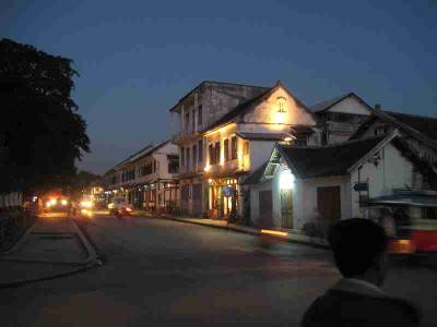 Das Bild zeigt eine fuer Luang Prabang typische Strasse, also eher mehr westlicher Baustill als asiatischer.