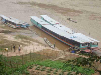 Dann gings auch schon, nach den ueblichen Formalitaeten mit dem Visum, mit einem Boot rueber ans andere Ufer und schon waren wir in Laos, das war ja einfach!