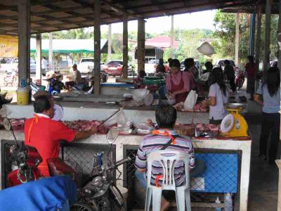 Das Fleisch sah da schon besser aus, allerdings gibt es dort keine Kuehltheke, statt dessen werden an Stecken befestigte Tueten dazu verwendet die Fliegen zu verscheuchen.