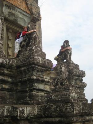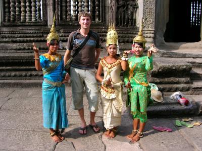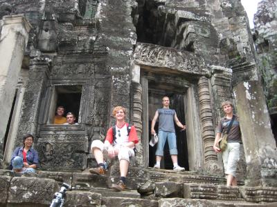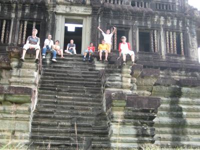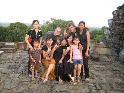 Der Tempel dazu hiess Phnom Bakheng. Da der Himmel den Tag aber ziemlich bewoelkt war hat man leider nicht so schoene Bilder machen koennen. Deswegen auch nur ein Bild mir ner Gruppe Maedels aus Kambotscha. Ist doch aus was!