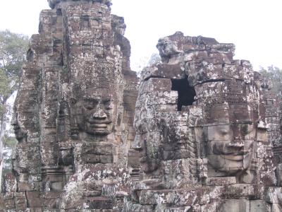 Danach gings nach Angkor Thom, eine Art Stadt mit Stadtmauern und vielen Tempeln inside. Den Haupttempel den Bayon Tempel haben wir uns rausgepickt. Der gleicht einem riesen Steinklotz mit vielen Tuermen und langen katakompenaehnlichen Gaengen.