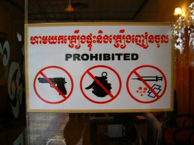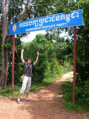 Diesmal gings nach Kambotscha, in Thai fast ziemlich genauso, naemlich Kambutscha, wenn das mal kein Land fuer den Tobi waer :-) Nur essen die da nicht mit dem grossen Loeffel, sonder wohl eher, wenn nicht mit Staebchen, mit dem kleinen, da es wohl eines der aermsten Laender weltweit ist. Noch vom Buergerkrieg gebeutelt wirds aber von Jahr zu Jahr besser, hat man uns zumindest gesagt, aber trotzdem sind noch gut die Spuren dessen erkennbar. In den Reisfeldern nahe der Strasse z.B. warnen alle paar Kilometer Schilder vor Landminen, auch wird mit grossen Plakaten zur Zerstoerung von Waffen aufgerufen und Menschen mit Kriegswunden wie fehlenden Gliedmassen und Brandwunden sieht allgegenwaertig.