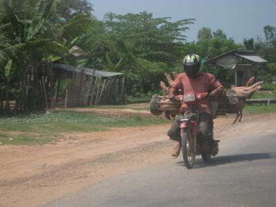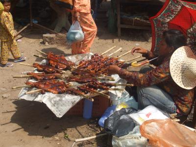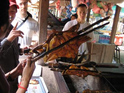 Hier auch noch mal 2 Bilder von den Maerkten am Strassenrand. Das erste davon zeigt das wohlbekannte kambotschanische Stockhuhn.