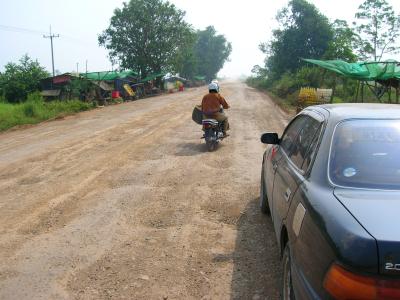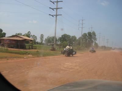 Das glich teilweise mehr einer Buckelpiste und selbst unser slalomerprobter Taxifahrer hat es nicht geschafft bei Tempo 20km/h alle Buckel zu umfahren. Mir wurde es dann so nach ner Stunde schon richtig mulmig im Bauch, denk mal vergleichbar wie Seekrank, aber nach nem Zwischenstopp und nem Bier gings wieder besser :-) Auch wurde die Strasse dann auch fuer kambotschanische Verhaeltnisse regelrecht zur Autobahn, sind satte 80km/h gefahren, allerdings zu frueh gefreut, war nur nahe ner groesseren Stadt und die Schlagloecher hatten uns wieder.