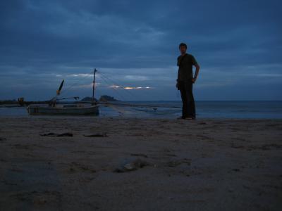 Gesagt getan, habe ich mich dann um 4:30Uhr auf einen Roller geschwungen und bin auf in Richtung Ostkueste gefahren, dummerweise lag unser Strand naemlich an der Westkueste. Naja nach 30min Fahrt und keinem Ende in Sicht, was das Erreichen der Westkueste betrifft, hat sich dann ein anderes Ende aufgetan. Ploetzlich war ohne jedliche Vorwarnung, oder vielleicht hab ich sie nur nicht lesen koennen, die Strasse zu Ende.