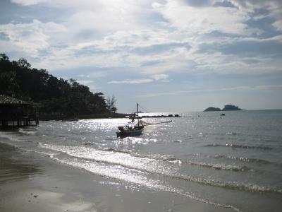 Ups. Ich wollte mich ja kurz fassen... Kambotscha hat mir sehr gut gefallen und ich habe dort unterschiedlichste Einblicke in das Land bekommen. Seis die Armut dort, aber gleichzeitig ne komplett andere Welt nahe der Touristengebiete und nicht zu vergessen die einfach nur atemberaubenden Tempelanlagen von Angkor Wat vergangener Zeiten. Der glueckliche Zufall, dass ich dort mit einer Gruppe von 8 Leuten unterwegs war, vorallem, dass eine Person davon eine thailaendische Professorin war, hat das Reisen ziemlich erleichtert und auch fuer meinen schmalen Studentengeldbeutel so einiges moeglich gemacht. Danach d.h. Nach 4 Tagen Kambotscha gings dann noch auf ne Insel oestlich von Bangkok, meine erste in Thailand und war einfach nur schoen dort. Ihr Name ist Koh Chang, sprich Elefanteninsel, aber leider ohne Elefanten, zumindest hab ich keinen dort gesehen. Hab dort auch ein wenig Farbe bekommen, allerdings waren 3 Tage nicht genug sich auszuruhen, da wir ja auch was sehen wollten.