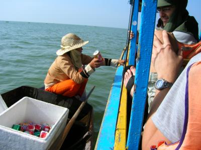 Selbst auf dem Wasser unterwegs war man nicht sicher. Da wurde unser Boot regelrecht geentert, nur um uns Getraenke oder Obst verkaufen zu koennen.