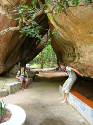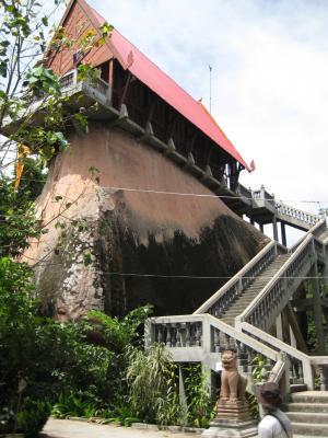 Den Namen von diesem weiss ich garnicht mehr, der war aber ganz lustig, da er ziemlich hoch einfach auf nen Felsen draufgesetzt wurde. Das ganze Innere wird dabei von einem in den Felsen eingehauenen, liegenden Buddha ausgefuellt. Muss ganz schoen viel Arbeit gemacht haben!!!
