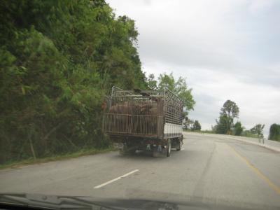 Der Heimweg ging diesmal wieder ueber ziemlich huegeliges Terrain und steilen Berge. So einige kurriose Augenblicke waren auch diesmal wieder dabei. So werd ich den Anblick denk ich nicht mehr vergessen, wie sich der voellig ueberladene von Bueffeln ueberquellende LKW die Berge hochgequaelt hat. Aber irgendwie funktioniert hier in Thailand trotz teilweise schlechten Gefaehrten doch alles!!!