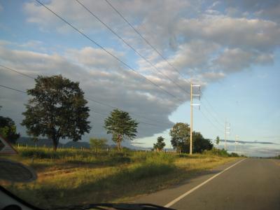 Gesagt getan, gings dann am Freitag um 13Uhr schon los nach Loei, wo seine aeltere Schwester lebt. Dazu muss gesagt sein, dass er mehrere Geschwister hat, ganze 9 Stueck an der Zahl, d.h. eine riesen Familie. Nach Thai Tradition pflegt er nicht nur diese ziemlich regelmaessig zu besuchen, sondern auch seine Cousinen und Cousins. D.h. er ist jedes WE unterwegs und das artet schon fast in Arbeit aus. Nach Loei z.B. waren es 500 bis 600 Kilometer einfach und das war nur die erste Station am WE. Dort gings durch ziemlich bergiges Gebiet so ca. fuer 6 bis 7 Stunden. Die Landschaft war anfangs noch ziemlich interessant fuer mich,