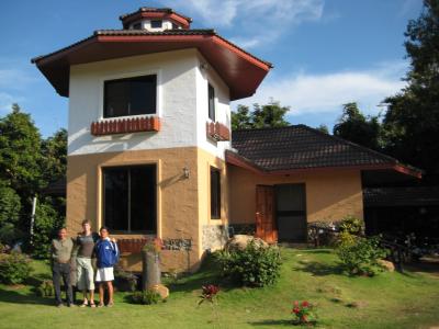 Wirklich jetzt schon ein schoenes Plaetzchen, das Ende Januar naechsten Jahres in Betrieb genommen werden kann. Eine Einladung dorthin hab ich natuerlich auch bekommen, aber wer weiss ob ich die jemals wahrnehmen kann. Ist naemlich ein wenig abseits der gewoehnlichen Touristenpfade, wohl eher fuer thailaendische Touristen ausgelegt. Allein wegen des Onkels wuerde sich aber der Trip lohnen! Er ist eine sehr angenehme und aufgeschlossene Person, sowie auch an deutscher Kultur interessiert. So hat er sich z.B. an seinem Haus im Resort fuer Thailand eher unuebliche Blumenkaesten installieren lassen.