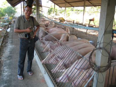 In Zukunft ist auch noch eine Biogasanlage zur eigenen Stromerzeugung vorgesehen, sowie eine Erweiterung des Betriebes in die umliegenden Felder. Also echt grosses Buisness, in der Tdao und sein Bruder, gelernter Tierarzt, nur noch als Verwalter fungieren werden. Fuer die ca. 5 bis 10 Angestellten wird natuerlich ein Haus im Farmgelaende errichtet, kostet ja in Thailand nichts! Trotzdem muss mein Betreuer fuer thailaendische Verhaeltnisse ein richtig reicher Mann sein, trotzdem er sich in Bescheidenheit uebt.